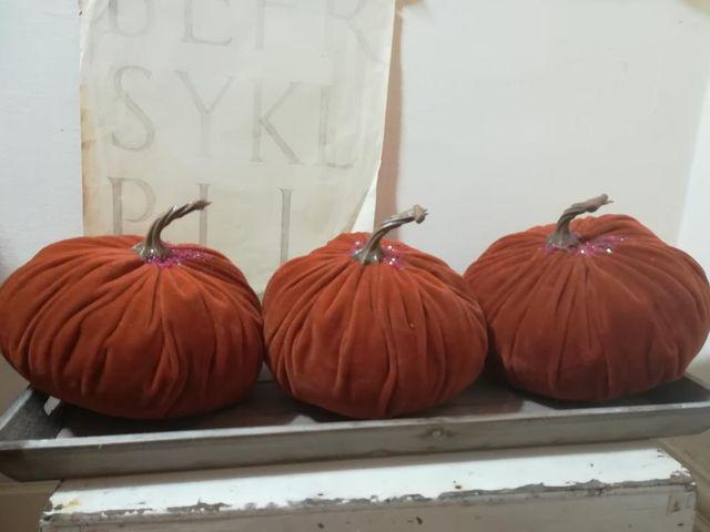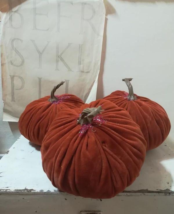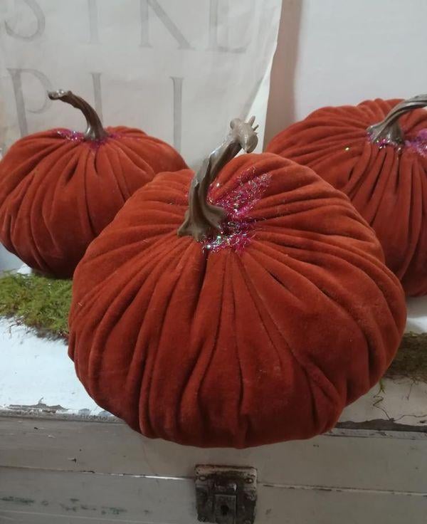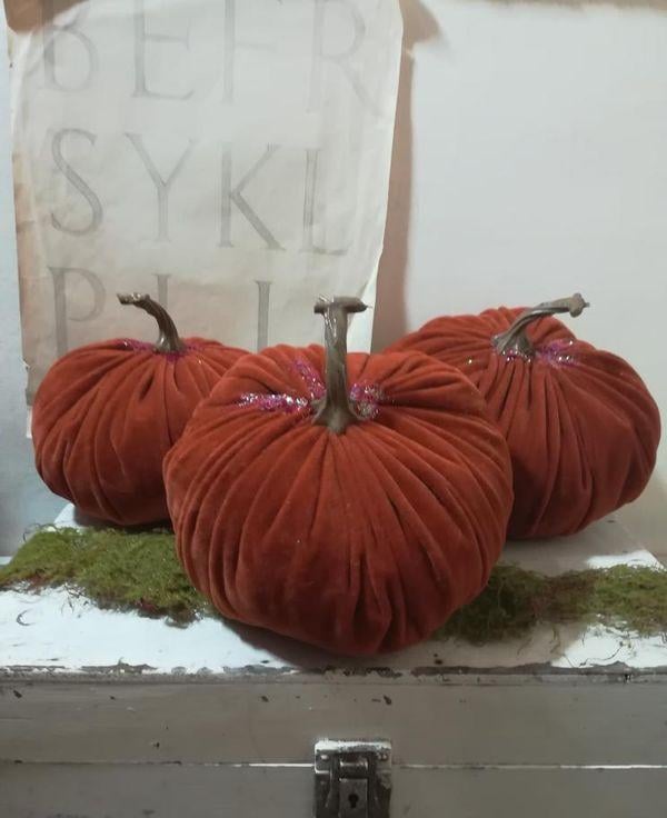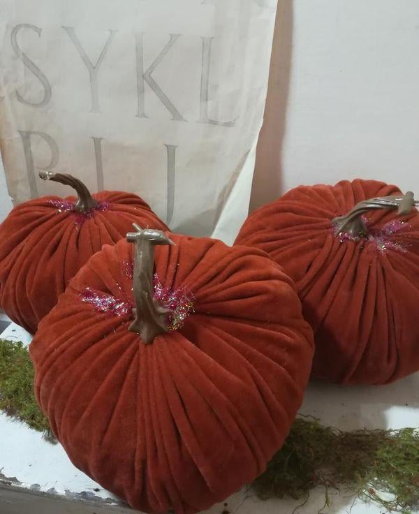Each of these pumpkins is handmade using vintage velvet in a gorgeous burnt orange hue.