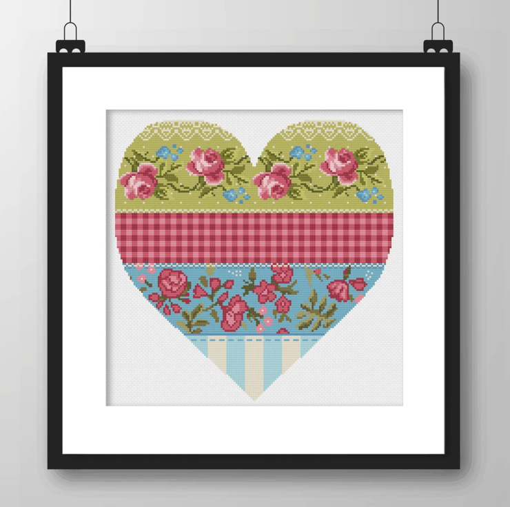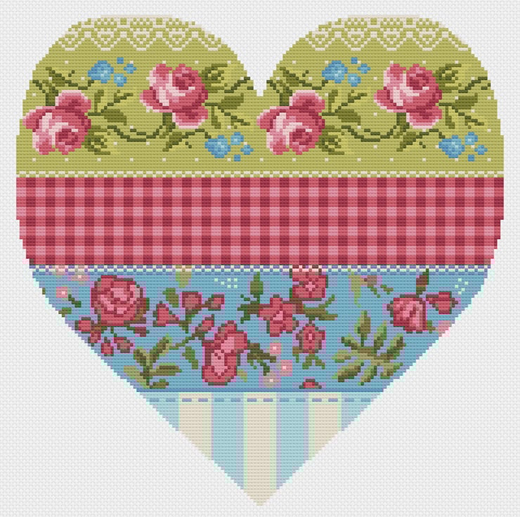 Victorian rose heart cross stitch and tapestry chart. And designed to have the least amount of 'fiddly' bits.