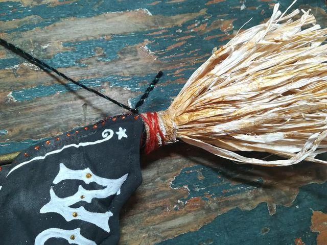I made a little broom for here to hang from, hand tinted with black and golden accents.