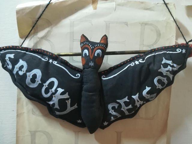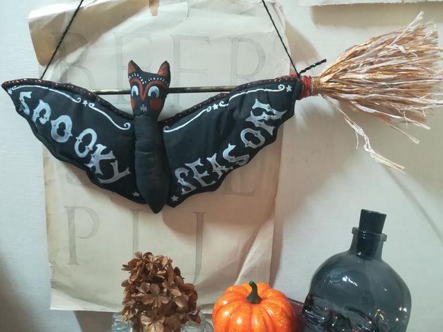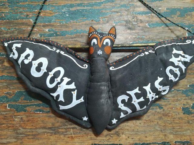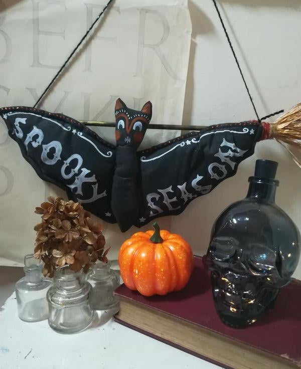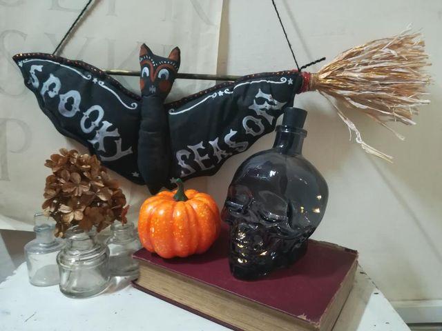 With her cute little features, glittering details and hand painted message of 'Spooky Season'