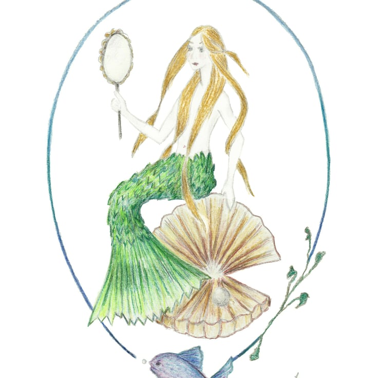 I started mermaid drawings in my late teens. I have tried a lot of versions and different ways of creating a mermaid picture including hand cut stencils, but the mermaid picture only finally emerged in August 2023....