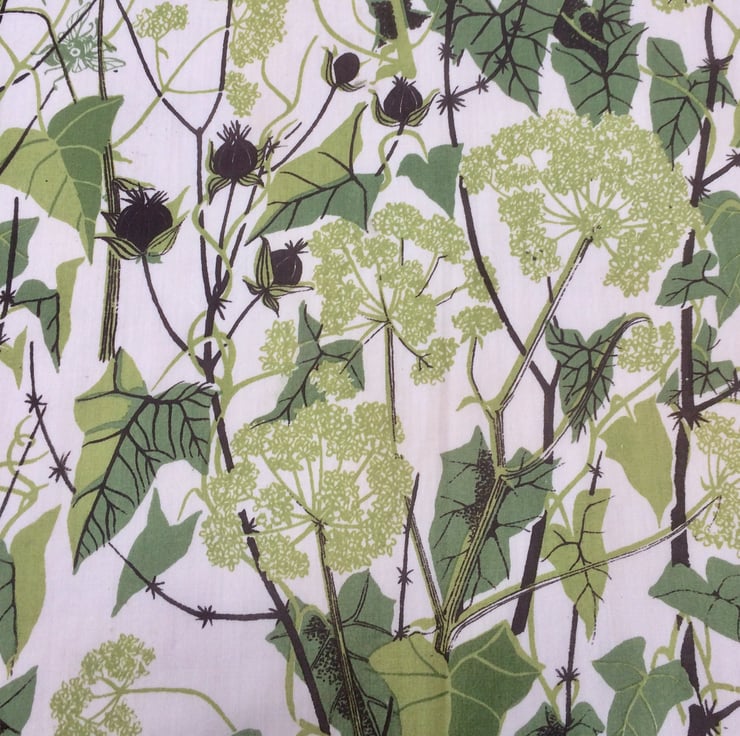 Green Wild flower Cow Parsley Ivy and Poppy Seed Head Vintage Fabric Lampshades - A beautiful feature for modern country cottage core decor