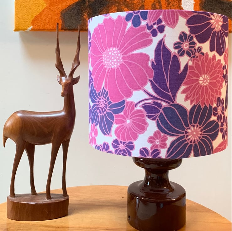 Vivid Pink Purple Funky RETRO FLOWER 60s 70s vintage fabric lampshade option - A bold feature in either a modern or retro setting.