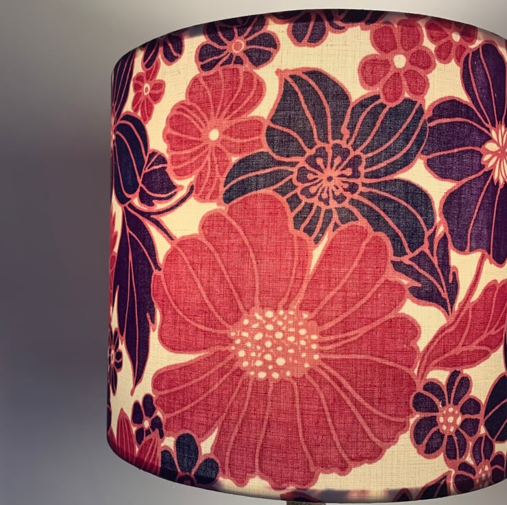 Vivid Pink Purple Funky RETRO FLOWER 60s 70s vintage fabric lampshade option