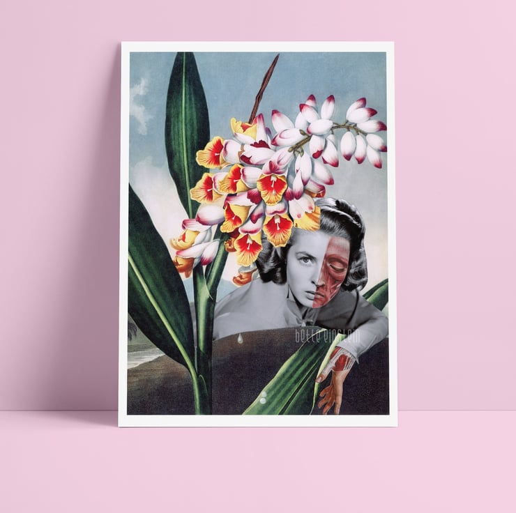 Ingrid - surreal collage art print featuring Ingrid Bergman.