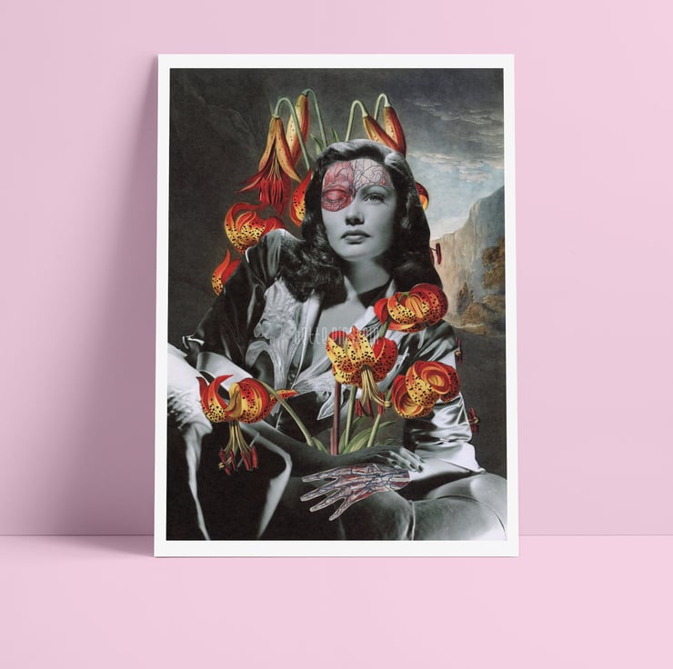 Gene - surreal collage art print featuring Gene Tierney.
