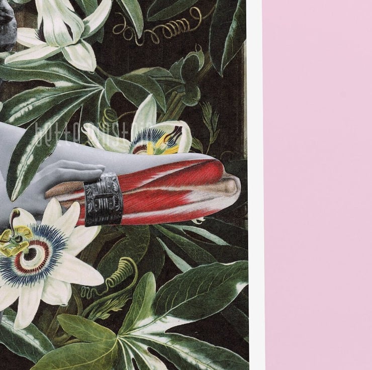 Collage by nature can be crude and blunt with it's composure, this is intentional not a printing error.