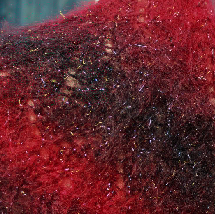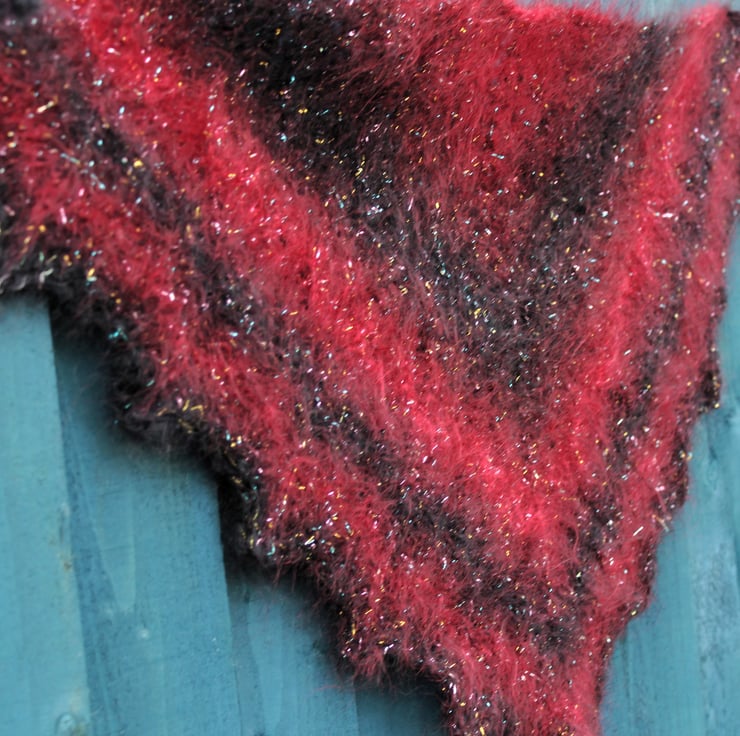 Triangular lace shawl in red & black sparkly Mohair yarn - design A197
