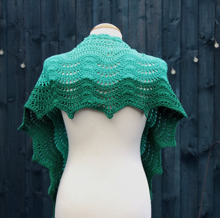 If you would like to see more photographs and read about how this shawl was made please visit my blog post about it. https://drapedinlacebyjuliablakeman.blogspot.com/2022/02/design-a193-blue-greens.html