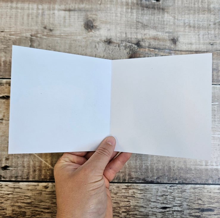 My greetings cards are printed on uncoated, silky smooth stock made from 100% post consumer waste which can lead to a varied speckling in the finished sheet adding character. They are also FSC Certified.