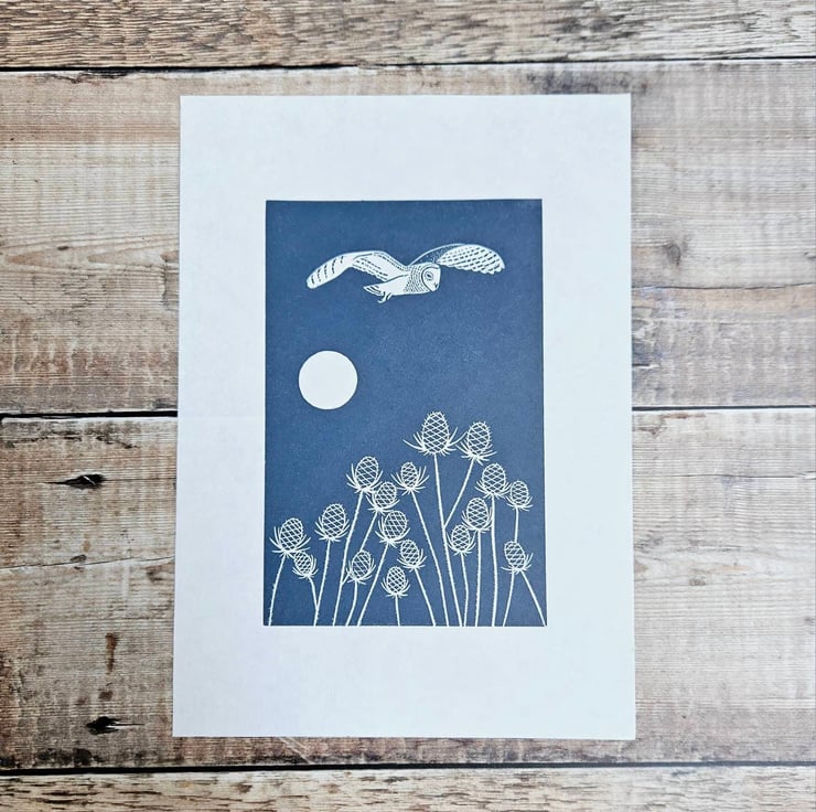 Titled 'Owl and Teasel' each print comes labelled OE (Open Edition) and signed in pencil.