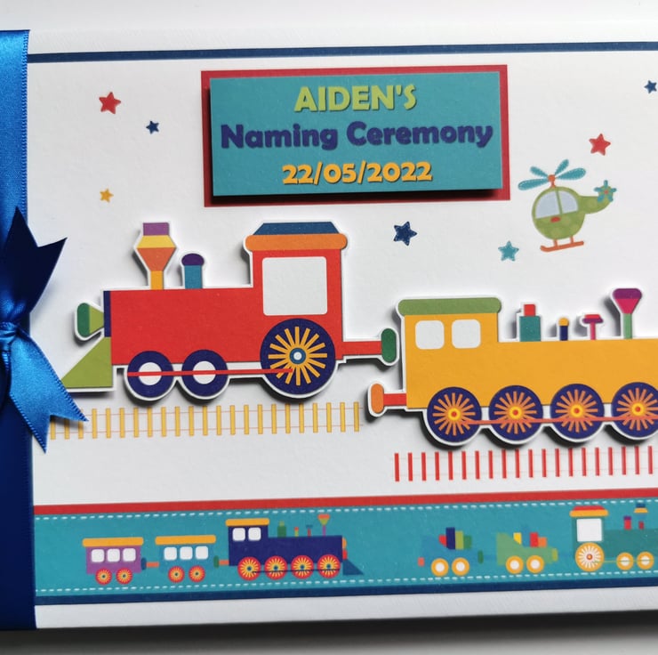 The guest book cover has soft leather finish and contains around 60 high quality acid free paper sheets which is perfect for messages (100 messages at 2 per side) from family and friends, and an everlasting record of the occasion. The guest book measures 21cm x 15.5cm and includes a keepsake box.
