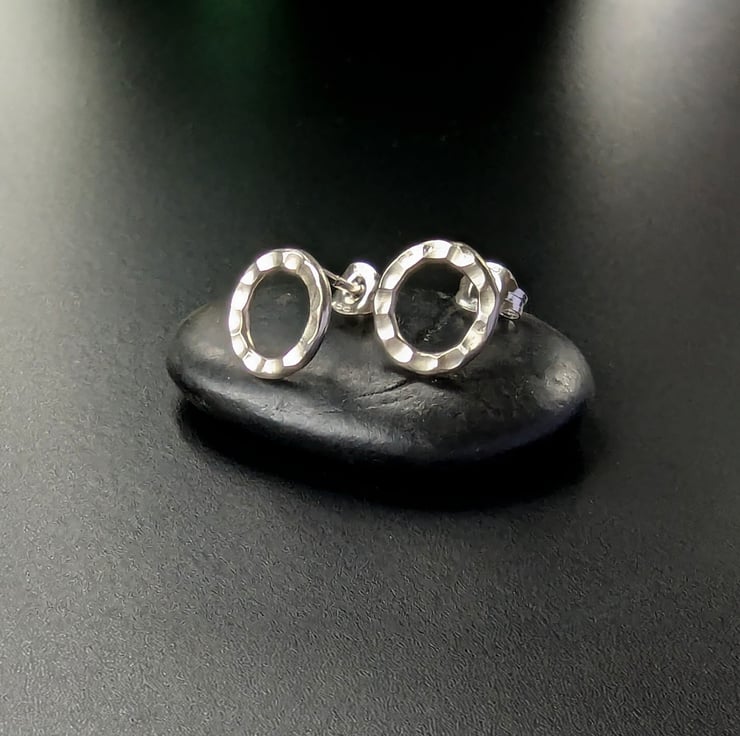 These little earrings are made sterling silver, hammered and textured.