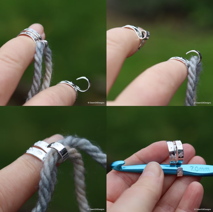 This listing is for an individually, handcrafted, solid sterling silver, fully adjustable HookerRing to reduce cramp and aid by regulating tension from the yarn ball to the work.