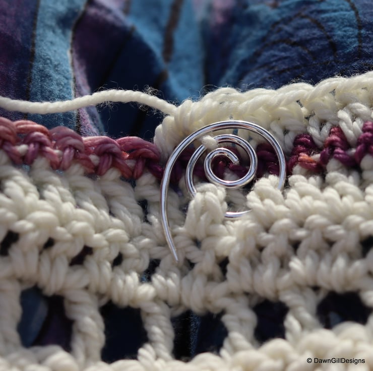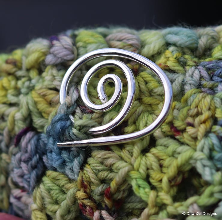 This listing is for an individually, handcrafted, solid copper, or sterling silver coiled stitch keeper / cable stitch needle assist / shawl pin.
