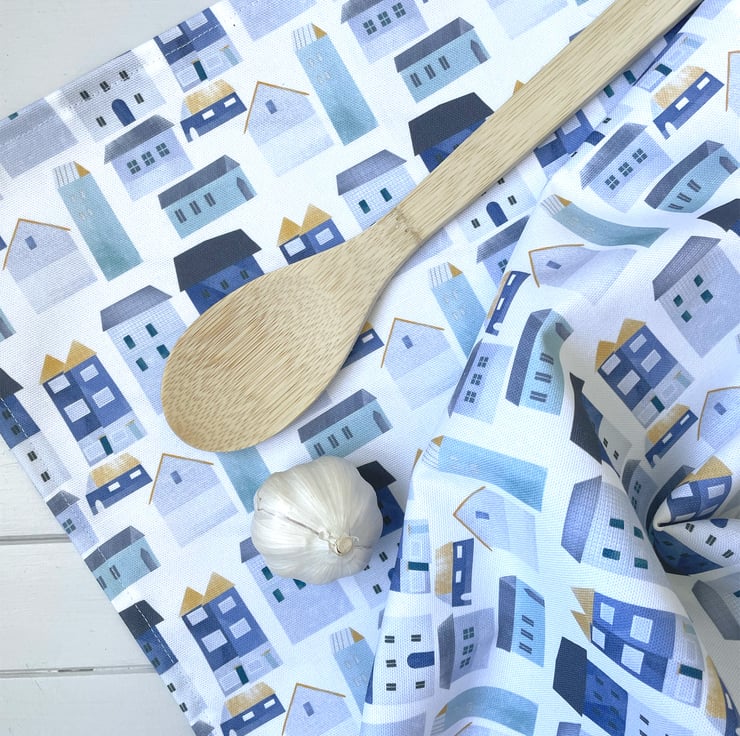 Handmade using my Harbour Houses design printed on 100% cotton. A lovely coastal inspired design, in classic blue and white.