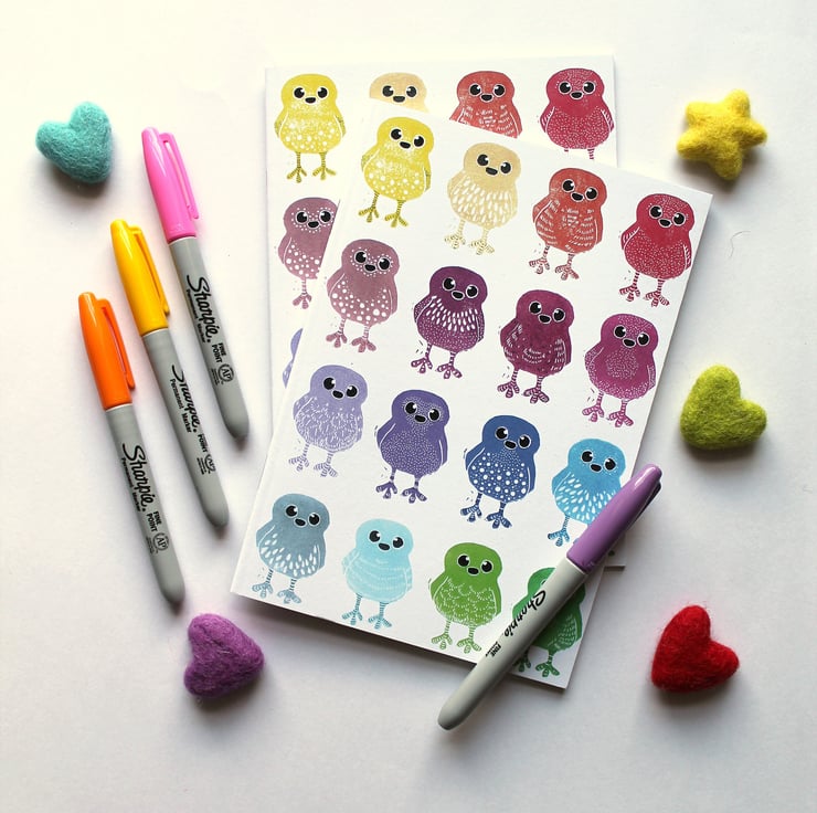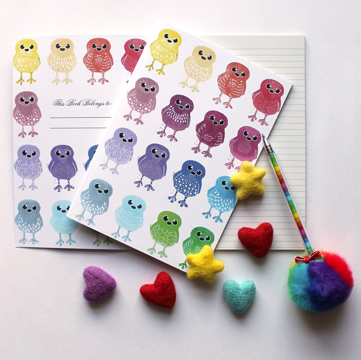 A5 Notebook, Doodle Bird Notebook featuring my rainbow doodle bird design which was hand stamped and then embellished with pen by hand, scanned into my computer, printed and turned into this cute little notebook ready for you to doodle your own birds!