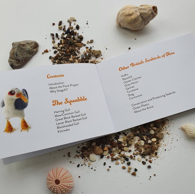 The book - Flock! By Melanie Ann Green, a Feltmeupdesigns guide to British Gulls and Other Sea and Coastal birds of Note.