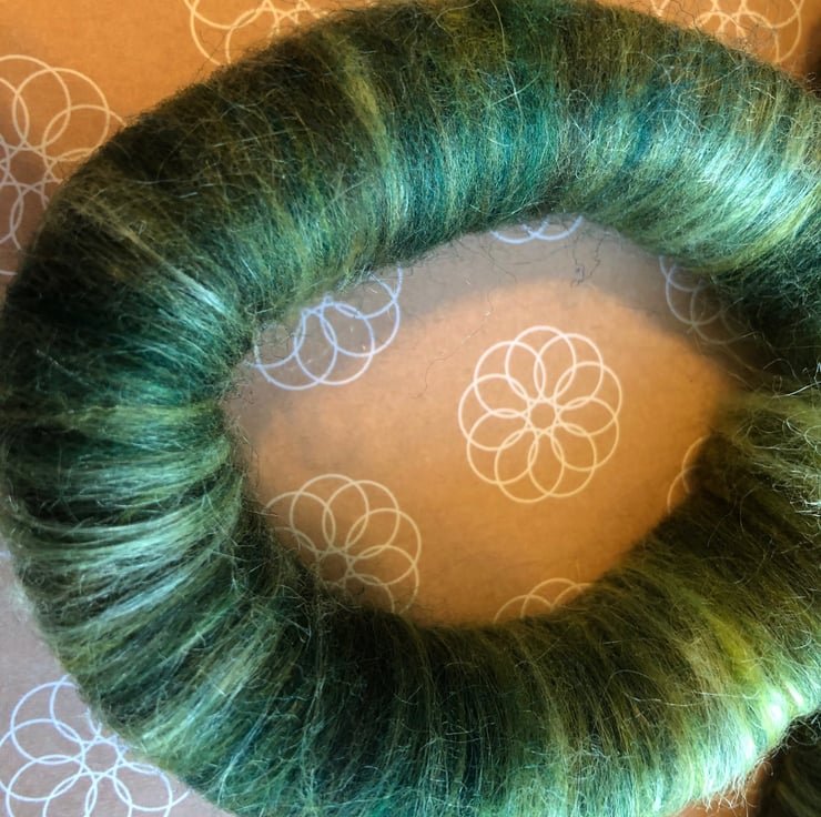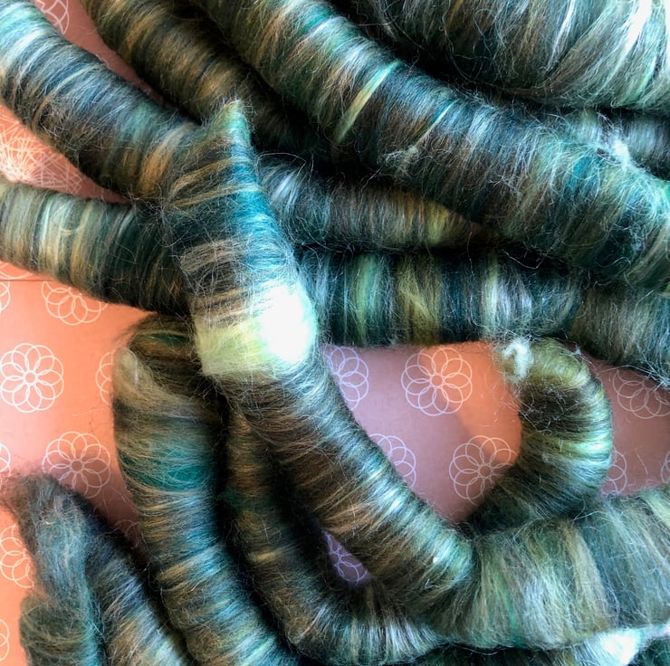 The colourway for this blend is just because I like greens - all shades, especially as we are eagerly approaching spring. There isn't much of a resemblance to bananas, but there is banana fibre in the blend.