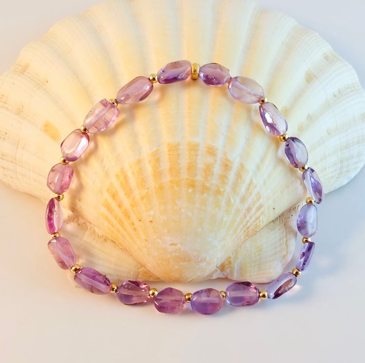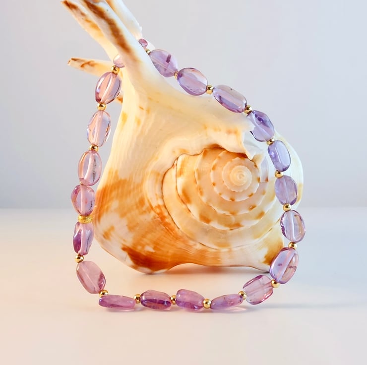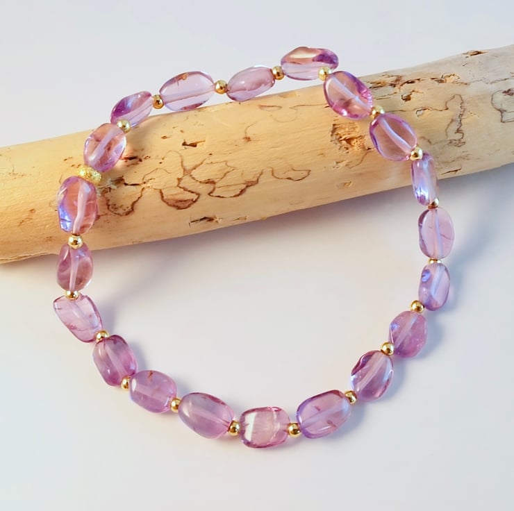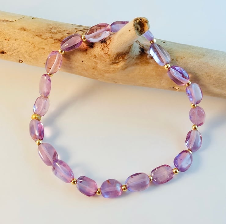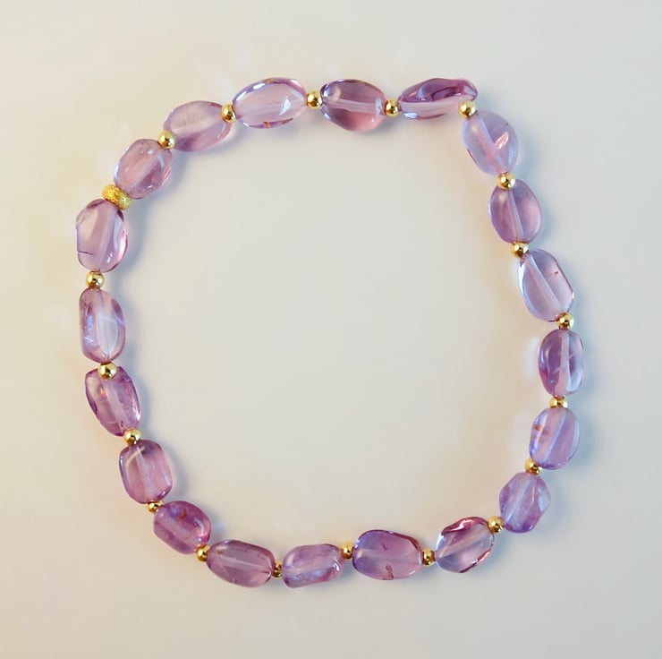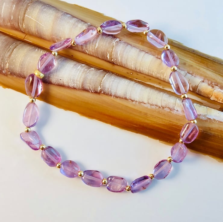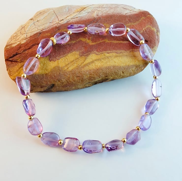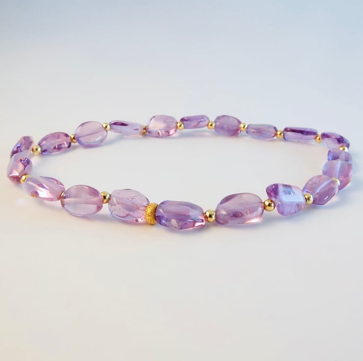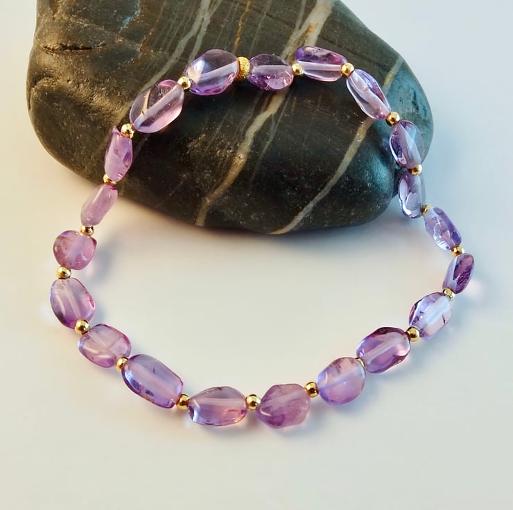 Pretty light purple bracelet made from rough cut nuggets of Lilac Amethyst and tiny gold vermeil beads.