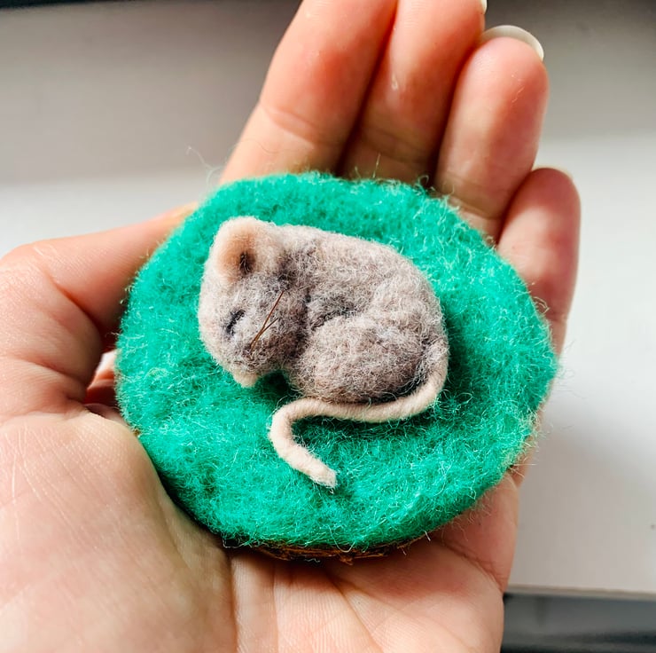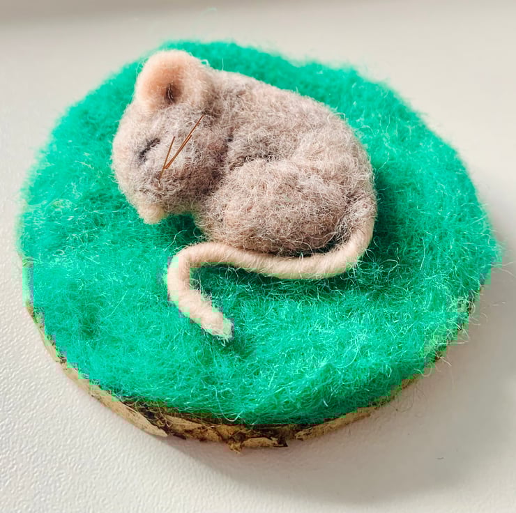 Handmade one of a kind needle felted sleeping mouse, the whiskers are made from horse hair. I have one available!