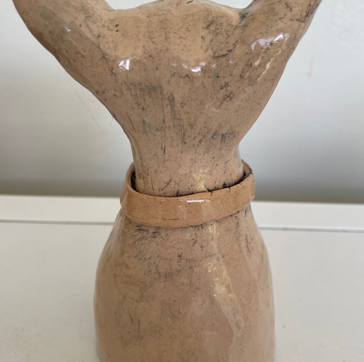 I like making cats and dogs. This one is inspired by the hairless cats you get. There is something I love about the colour and texture of clay with a wash of glaze then sponged back.