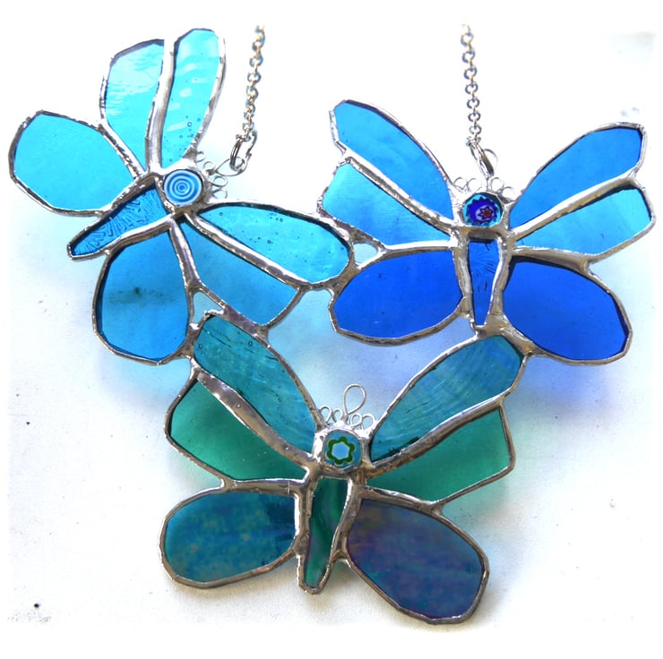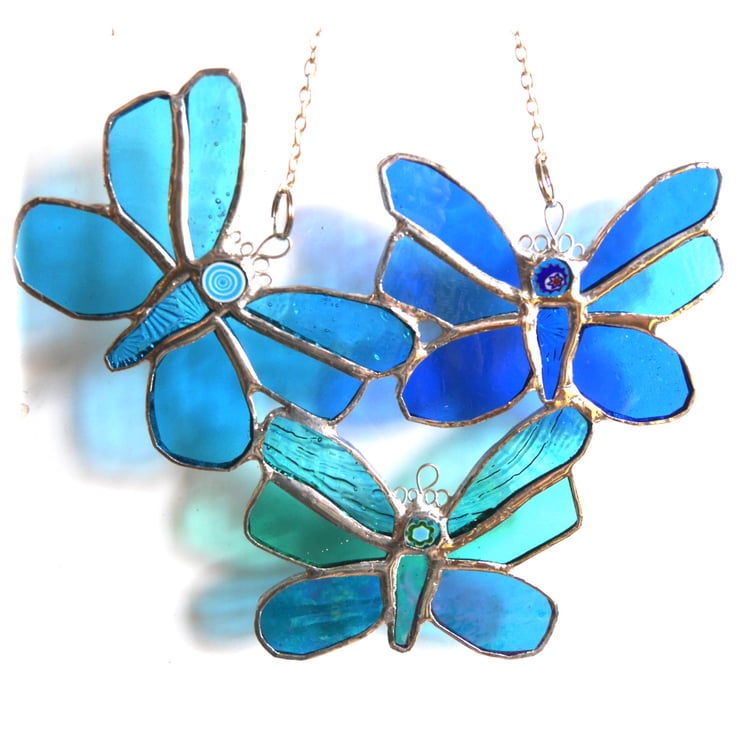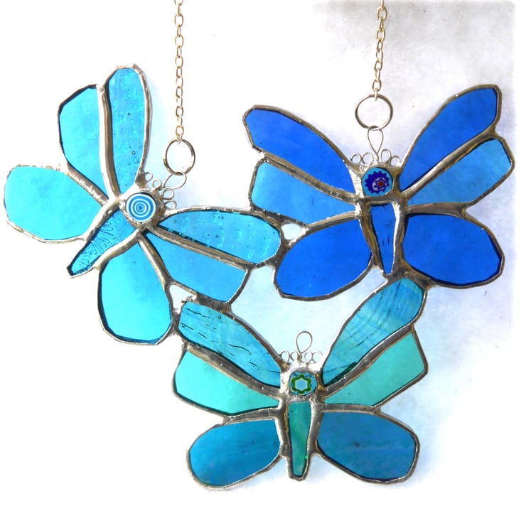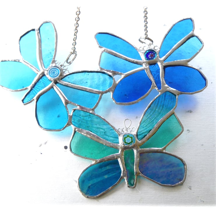I've made three little butterflies joined, so they fly all together, into a pretty shape as a single suncatcher.
