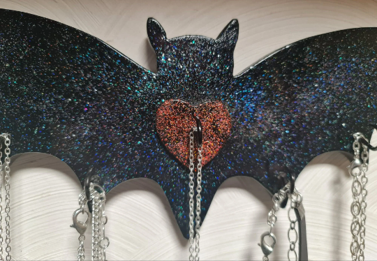 Love anything Bat like and my necklace collection was getting rather to large, so we created this and then i couldn't decide to go with just black or glitter, so we make both!