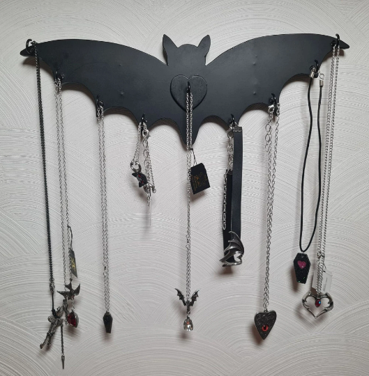 This magnificent Bat has 9 hooks to display your beautiful jewels