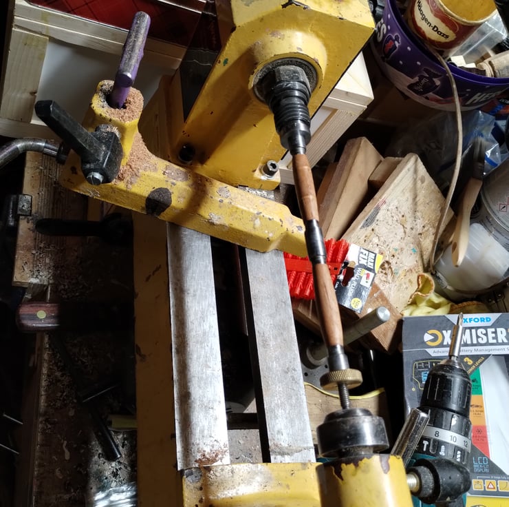 The first three are photos of the pen being offered for sale. The other photos are photos showing the making process, gluing bits of wood, drilling holes then turning on the lathe....finally a coat of button polish, after sanding smooth, then carnauba wax and microcrystalline wax, a quick polish then assembly.... et voila a new pen....its amazing how long it all takes, but quite satisfying....some are more perfect than others.... I don't do the whole "examine with a watchmakers glass" thing, so they are just nice pens with quirky bits....hence the quirky price....