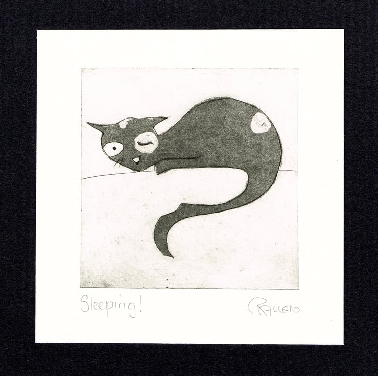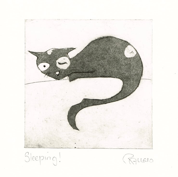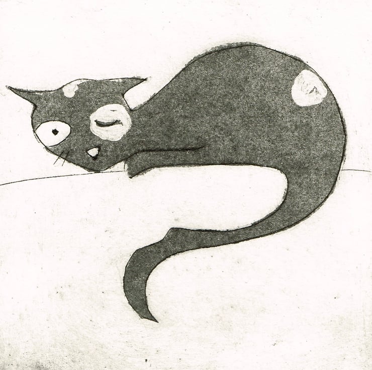 This is a dry point etching print, printed on watercolour paper. It is 14cm x 14cm and the etched area is 10cm x 10cm. It will come wrapped in cellophane, so with make a nice gift.
