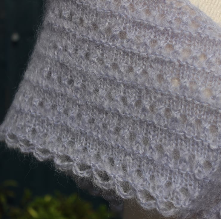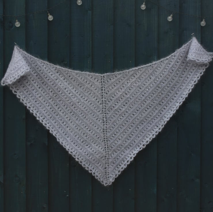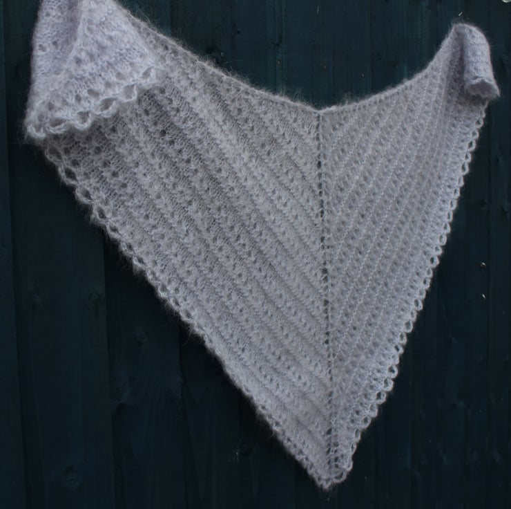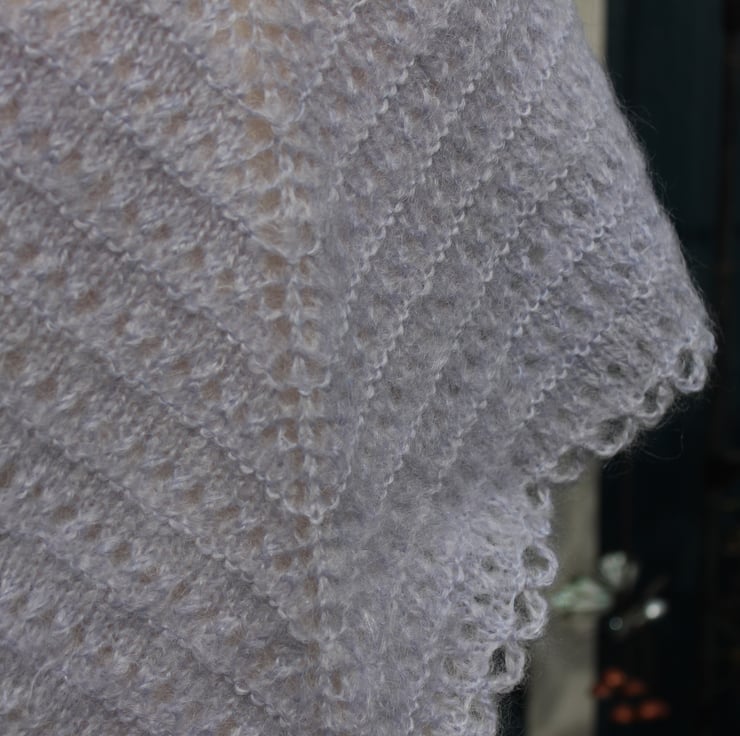If you would like to see more photographs and read about how this shawl was made please visit my blog post about it. https://drapedinlacebyjuliablakeman.blogspot.com/2020/10/a516-in-grey-mohair.html