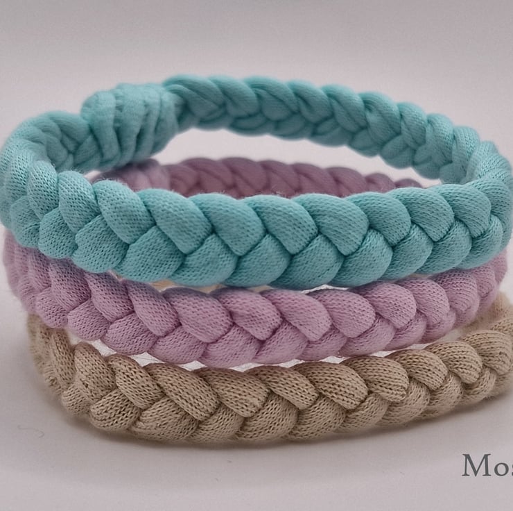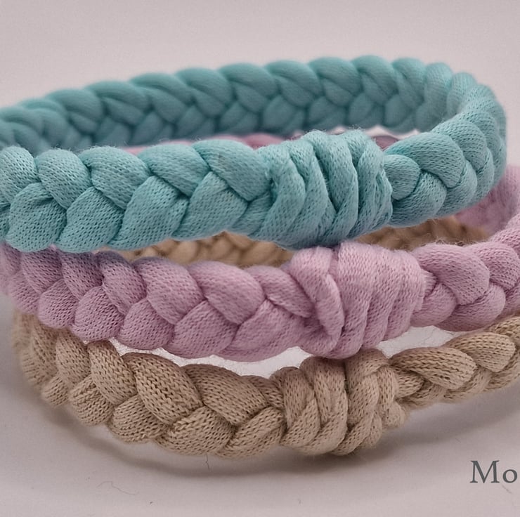 Set of 3 bracelets lovingly hand made from recycled cotton yarn.