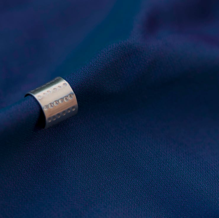 A chunky ear cuff in fine Sterling Silver with a "dimpled" design. Designed to be worn on its own but would also look great with a simple matching ear stud. Contemporary, minimalist, sleek!
