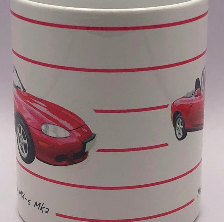 11 fluid oz ceramic mug (95mm high, 80mm diameter not including handle) suitable for dishwasher and microwave. Printed on both sides. 11 fluid oz ceramic mug (95mm high, 80mm diameter not including handle) suitable for dishwasher and microwave. Printed on both sides. If choosing the Four Mug Option they do NOT all need to be the same, the Other Three can be any other vehicles from my range. There is also a Yellow Mazda MX-5 Mk2 in my range.