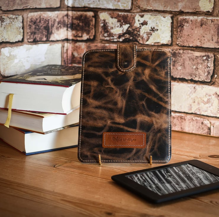 A Sturdy Felt and Leather Kindle Case with a magnetic tab closure.