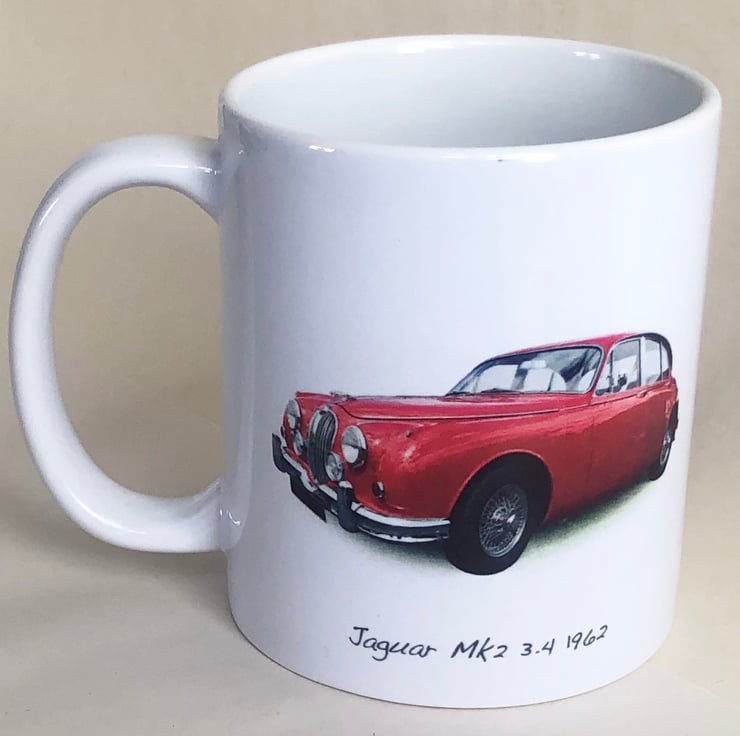 Jaguar Mk2 3.4 1962 (Red) - 11oz Ceramic Mug - Gift for Jag Enthusiast