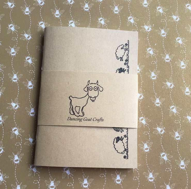 Hand stitched A6 notebook. Sheep design, perfect for crochet/knitting project bags.
