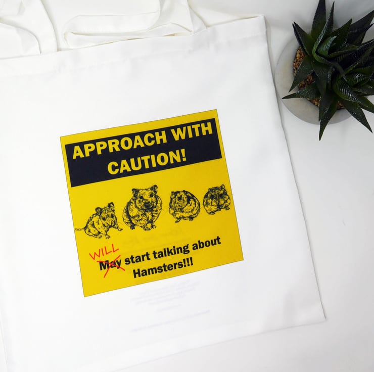 Measuring 40cm x 38cm, this soft shopping tote bag in a white cotton effect finish is a perfect gift for all hamster lovers.