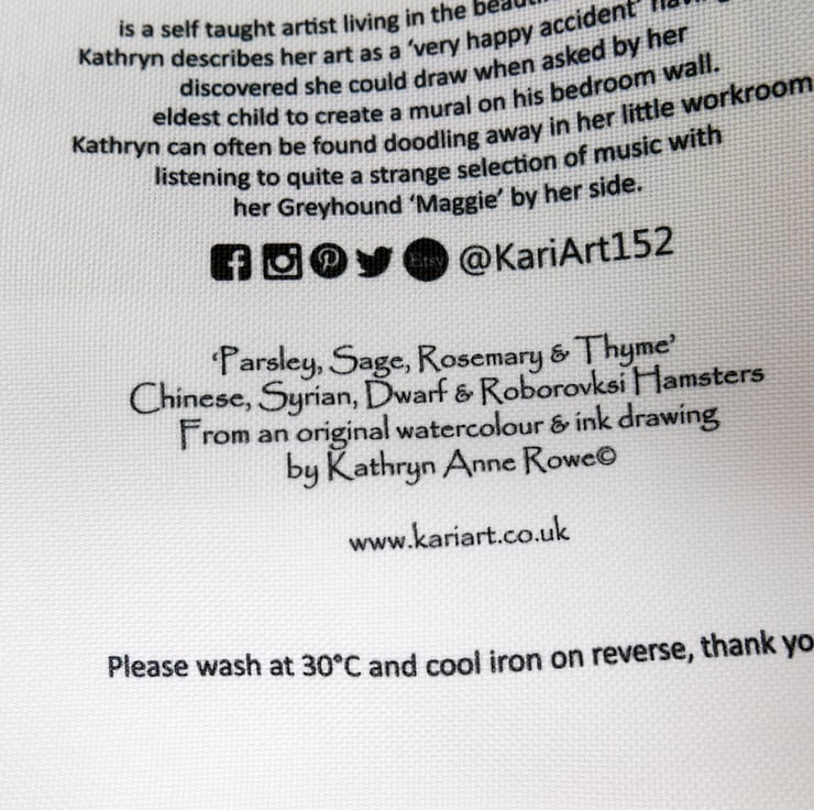 Hamster soft white cotton effect tote bag featuring my pointillism & pen drawings of super cute Parsley, Sage, Rosemary & Thyme" - the Chinese, Syrian, Dwarf & Roborovski Hamsters. As a fellow hammy owner - I think this is one bag we all need ha ha!!!!