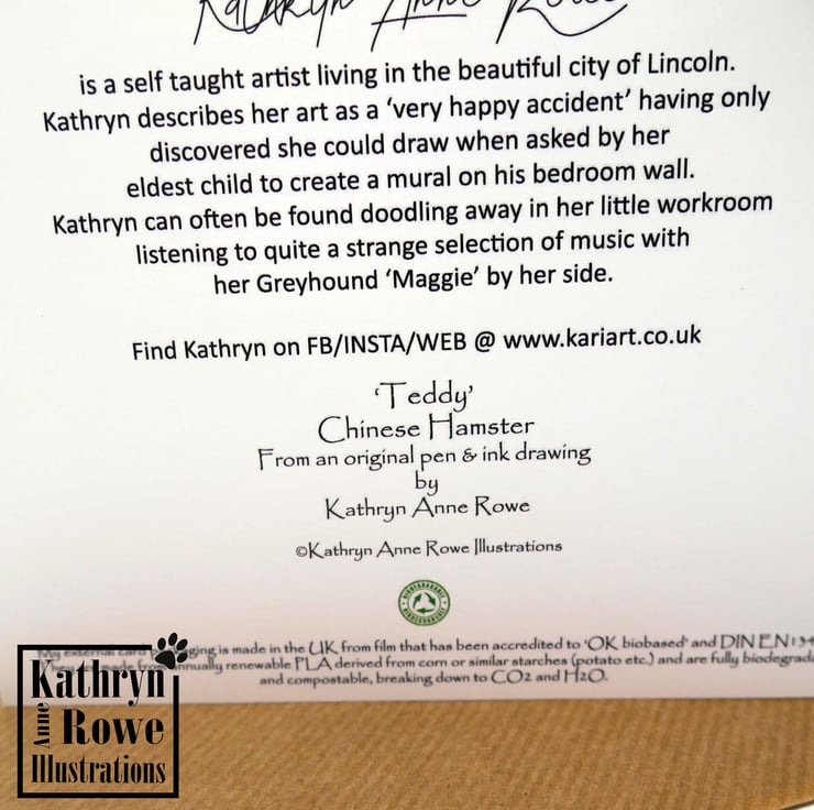Chinese Hamster greeting card featuring my watercolour painting of Teddy the gorgeous Chinese Hamster.