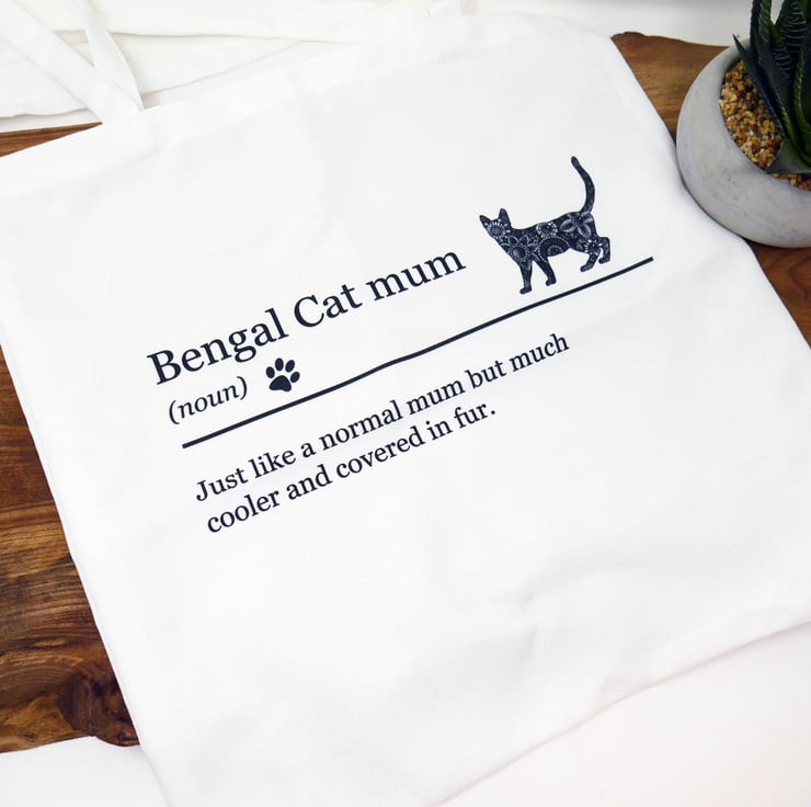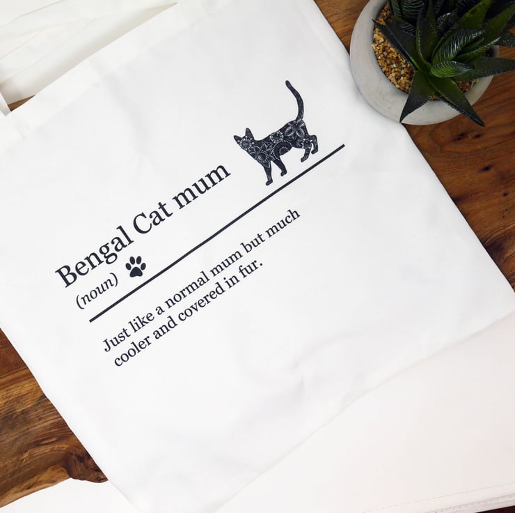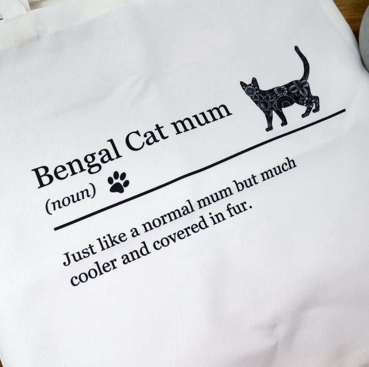 Bengal Cat bright white canvas effect tote bag featuring my pen & ink mandala style drawing of 'Penelope' the lovable Bengal Cat.