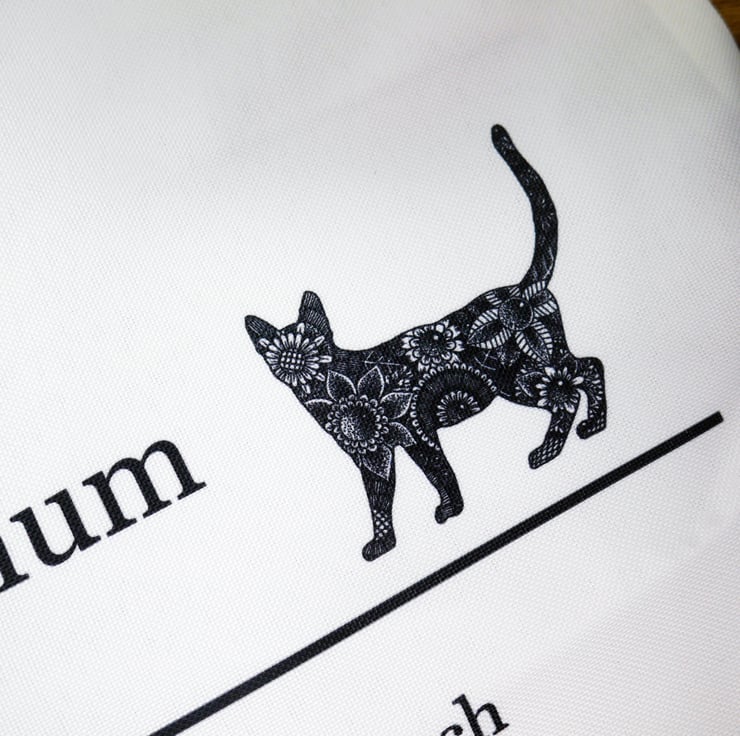 Measuring 40cm x 38cm, this soft shopping tote bag in a white cotton effect finish is a perfect gift for all cat lovers.