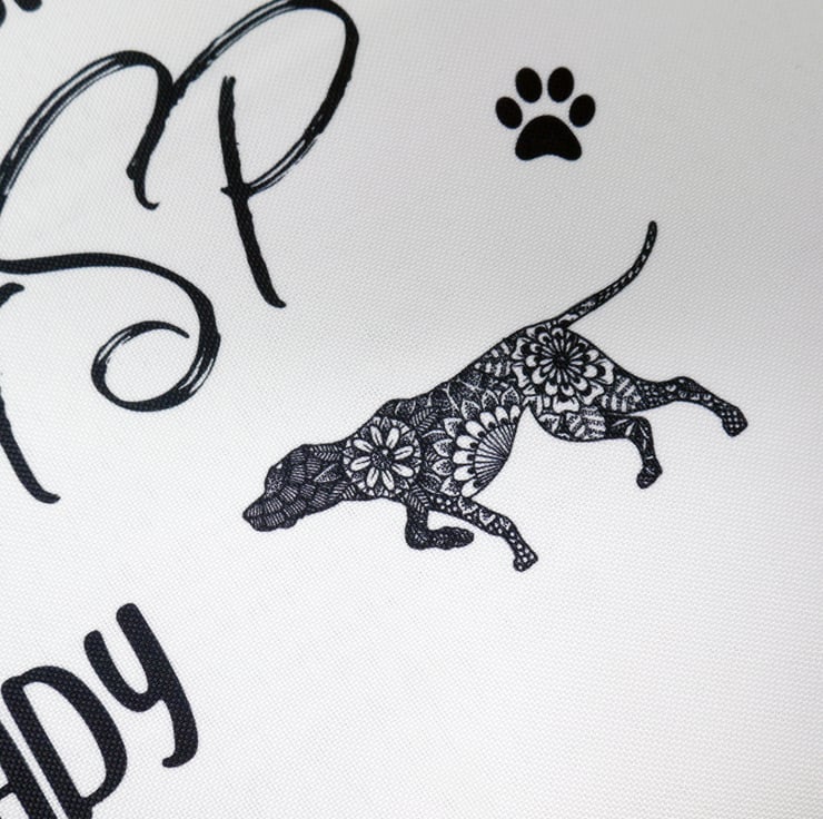 Measuring 40cm x 38cm, this soft shopping tote bag in a white cotton effect finish is a perfect gift for all dog lovers.