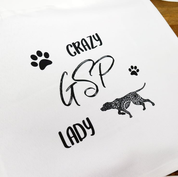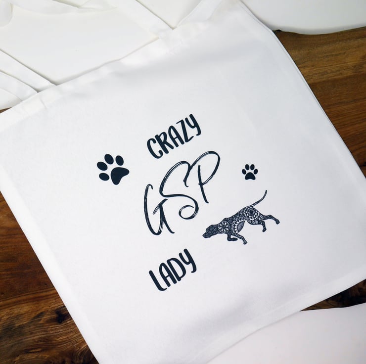 German Shorthaired Pointer bright white canvas effect tote bag featuring my pen & ink mandala style drawing of 'Beri' the German Shorthaired Pointer.