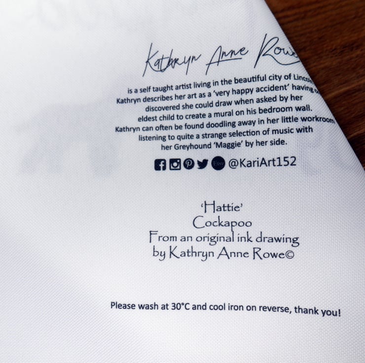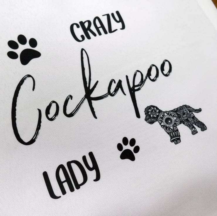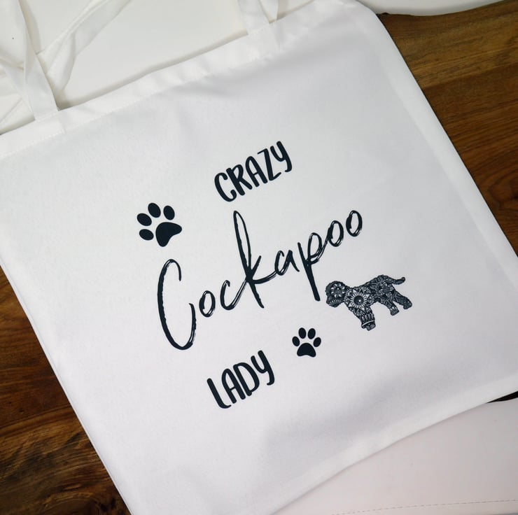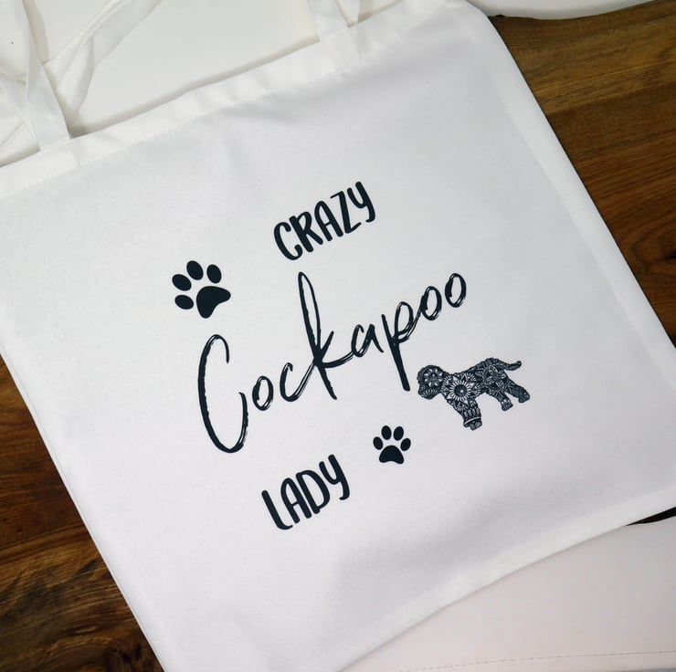 Cockapoo bright white canvas effect tote bag featuring my pen & ink mandala style drawing of 'Hattie' the lovable Cockapoo.