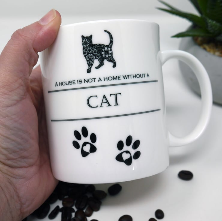 Cat 15oz Bone China mug featuring my mandala style pen & ink drawing of 'Mo' the cat
