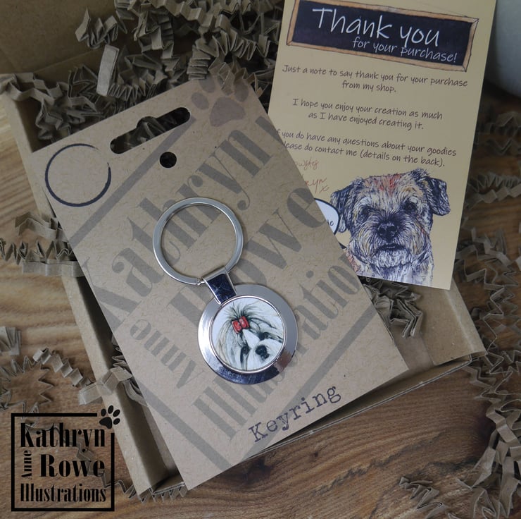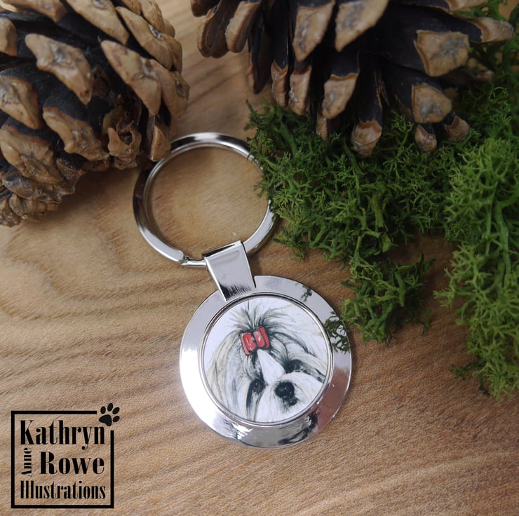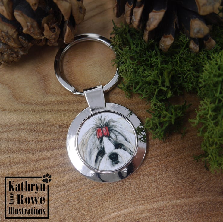 Shih Tzu metal keyring featuring my watercolour painting of 'Daisy' the adorable Shih Tzu.