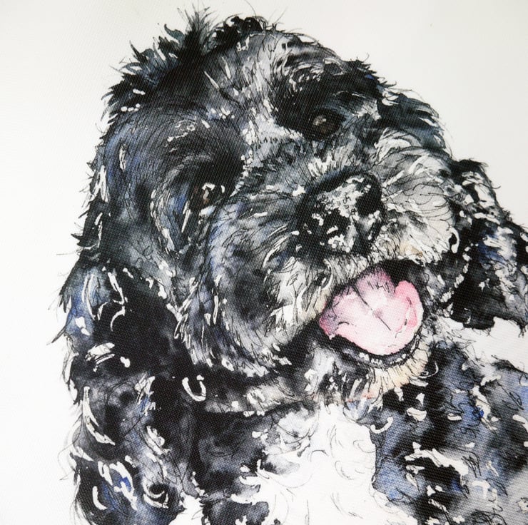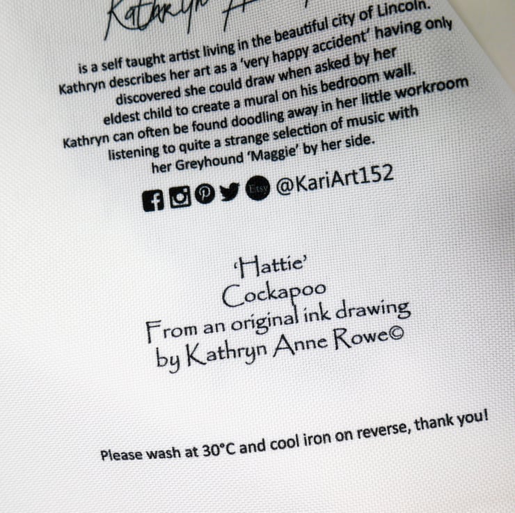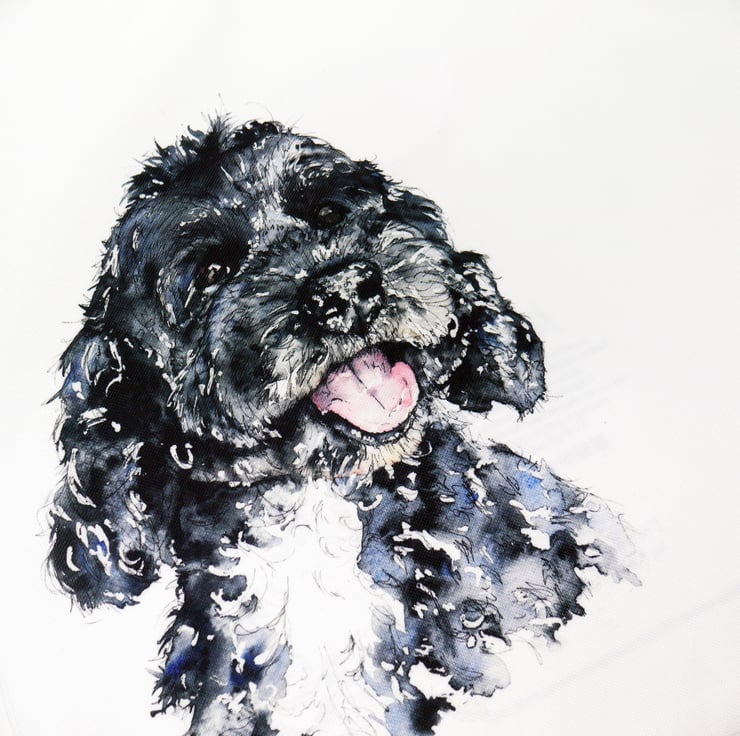 Cockapoo soft white cotton feel tote bag featuring my watercolour and ink portrait of beautiful smiling 'Hattie' - the loveliest Cockapoo I've ever met!