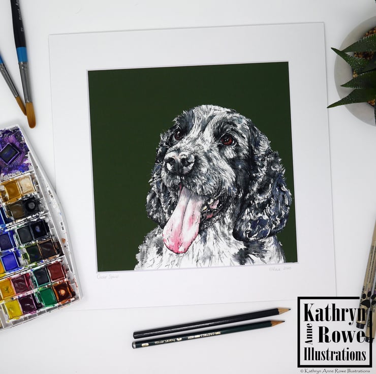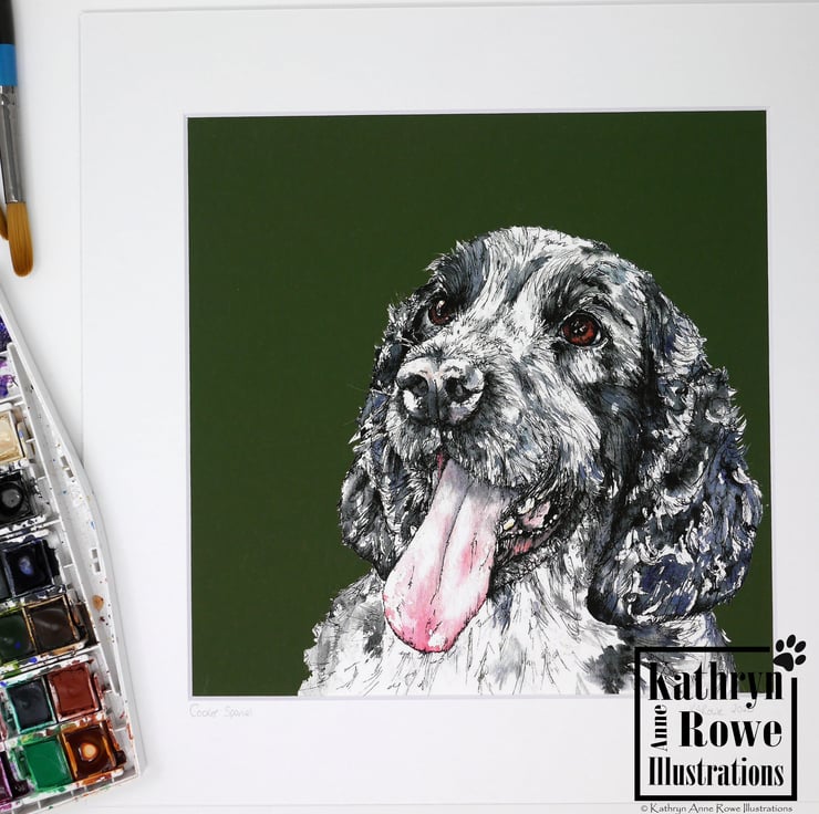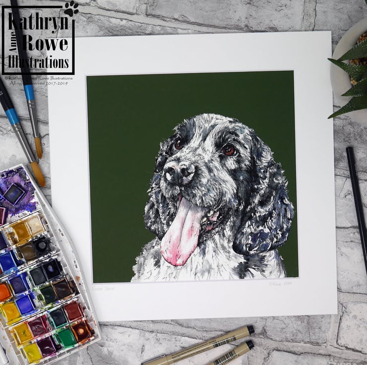 Cocker Spaniel fine art Giclee Print reproduction of my original watercolour painting of 'Noah' the handsome Cocker Spaniel.